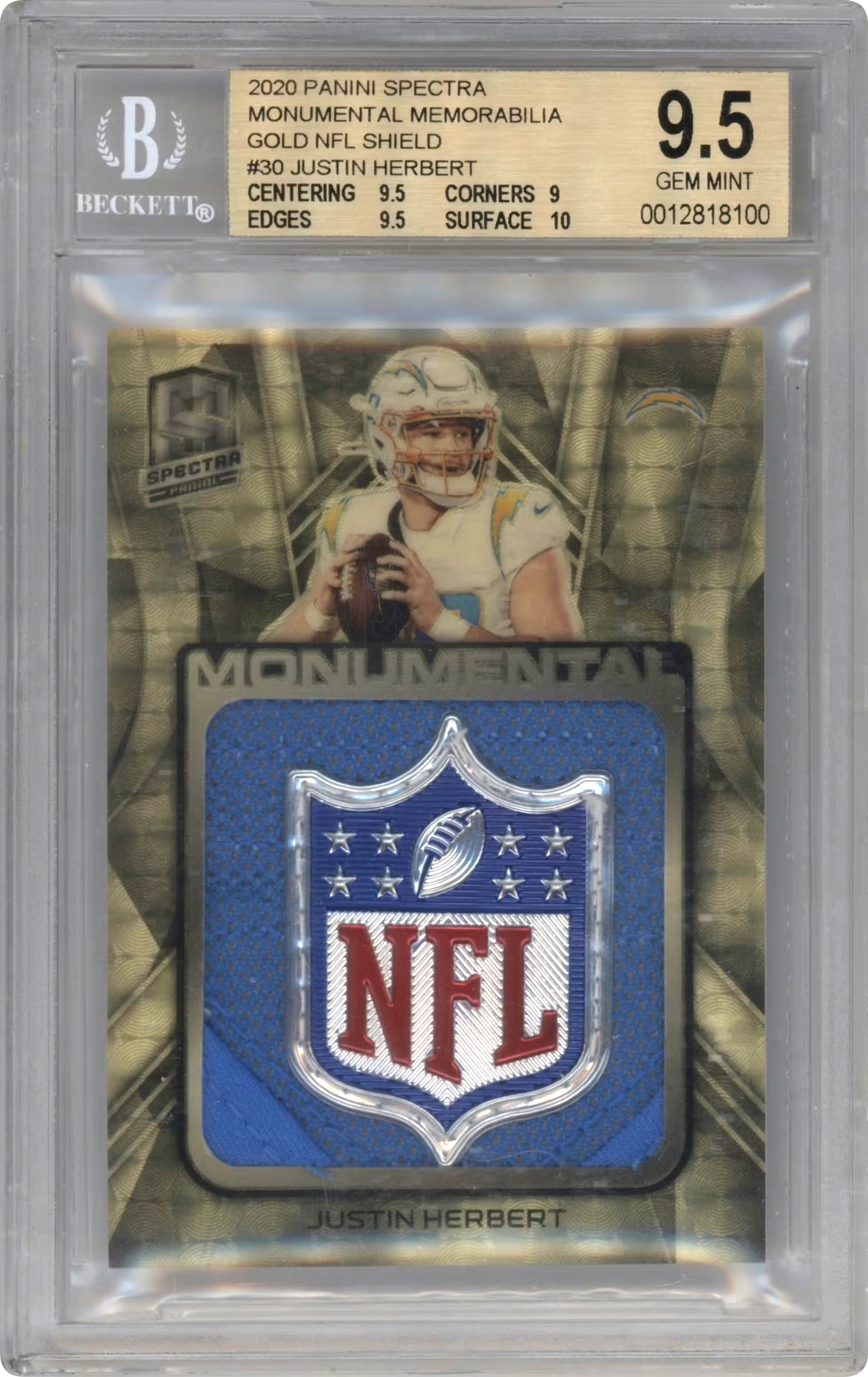 2020 Panini Spectra · Monumental Mem. · Gold NFL Shield #30